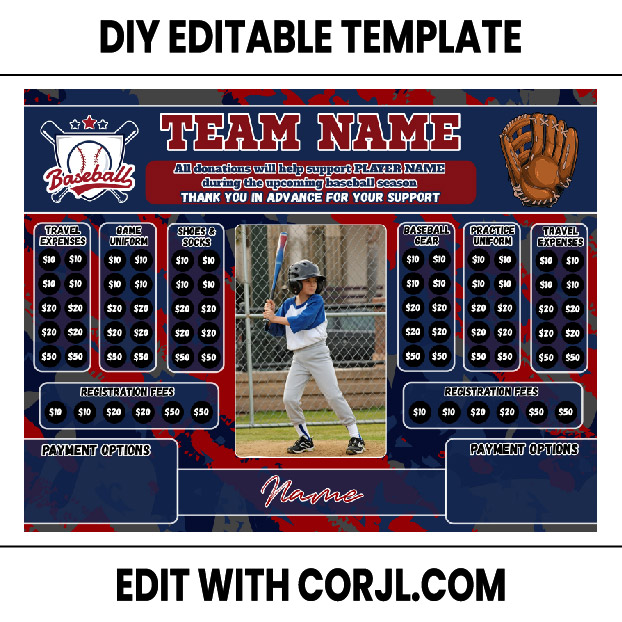 🎉 Corjl-Editable Baseball Sponsor My Season Template – Your Personalized Fundraising Adventure! 🎉