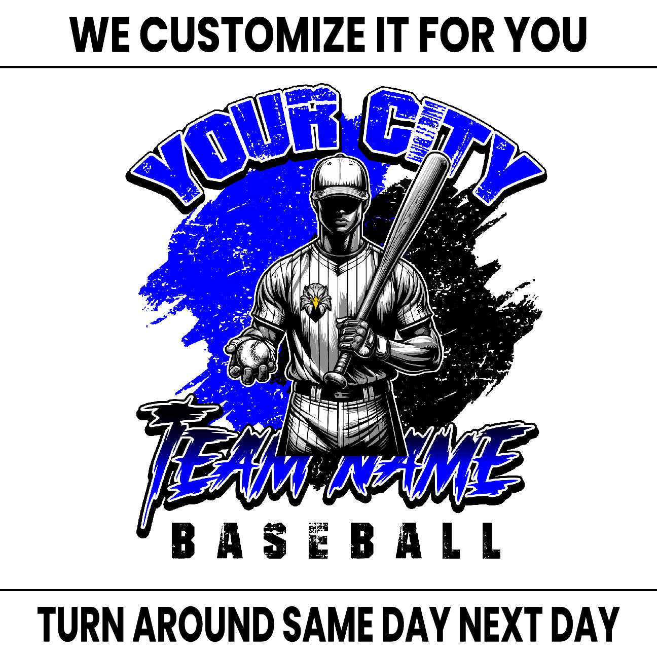 We can create it for you, you just need to add all your info (Team Name, Colors, Player Name, Number and any additional info) to the personalization box and attach your logo or picture.