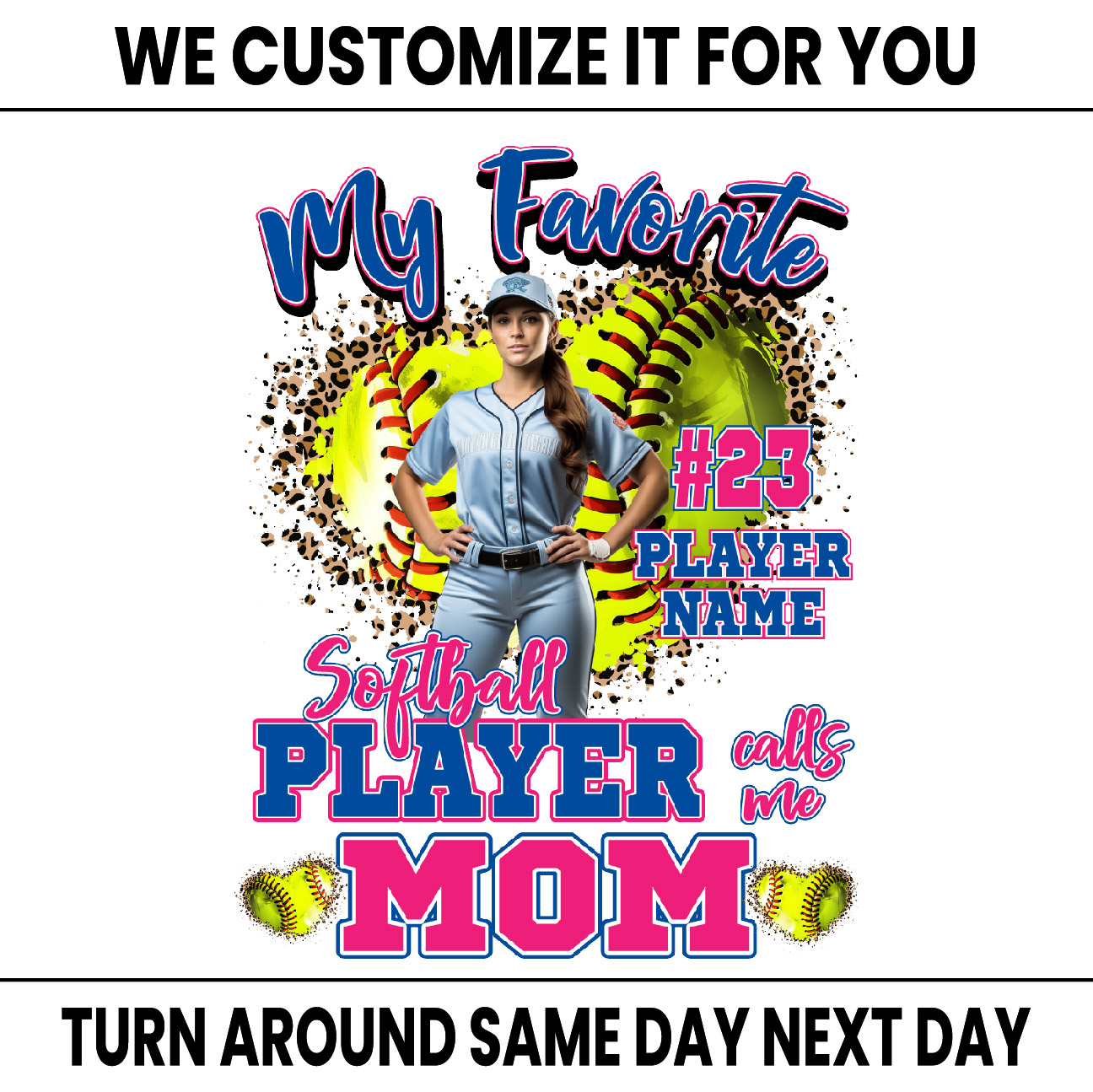 💙Create personalized merchandise like team posters, shirts, or banners for true fans, Softball mom and Softball dad.