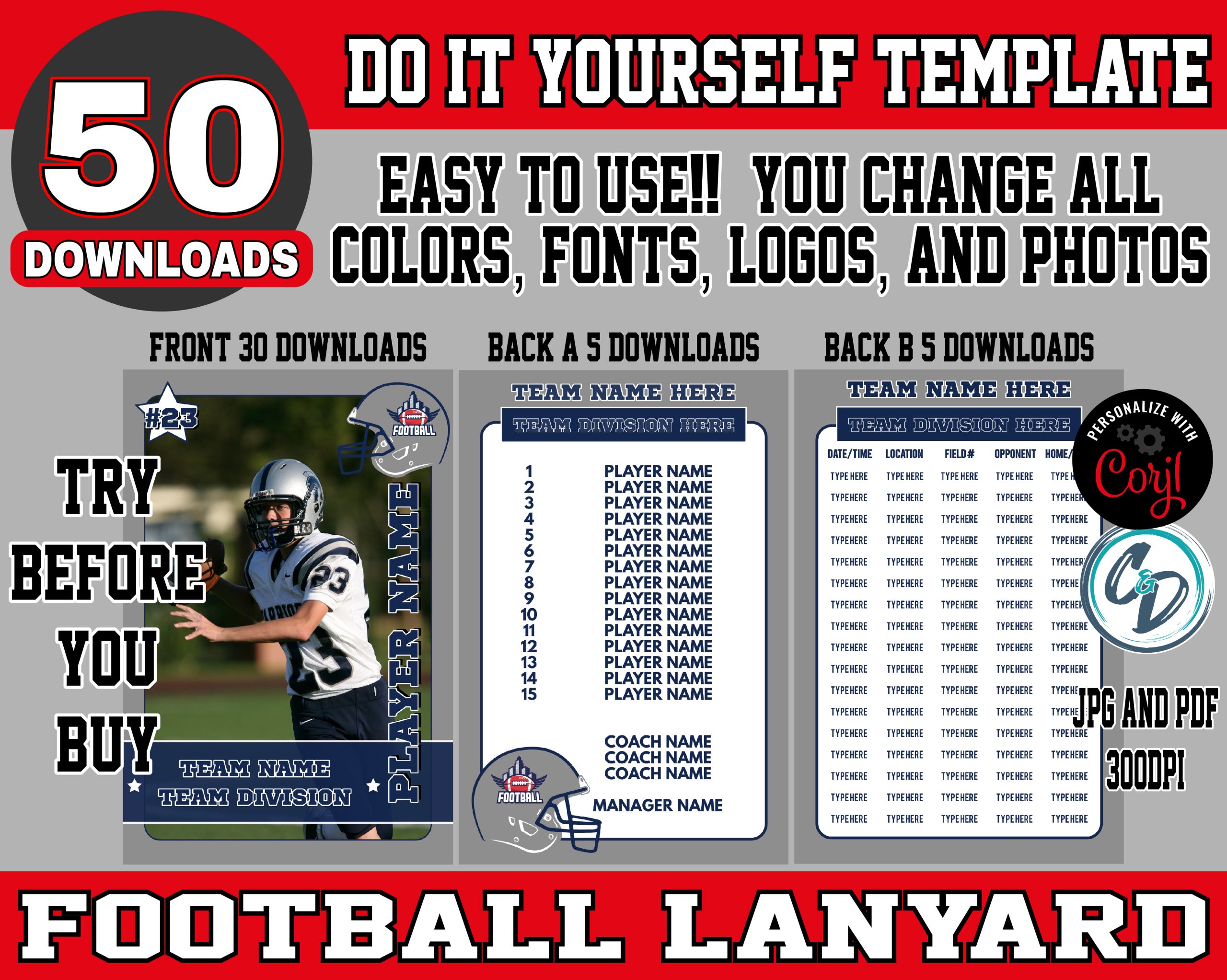 🌟 Corjl-Editable Football Lanyard Template – Your Essential Tool for Organized Events and Vibrant Tournaments! 🌟