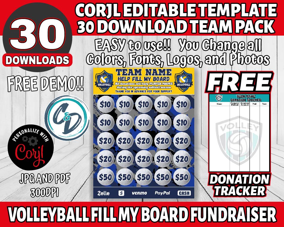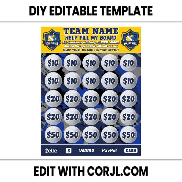 🎉 Corjl-Editable Volleyball Fundraiser Fill My Board Template – Your Personalized Fundraising Adventure! 🎉